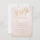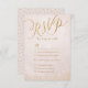 Glamor faux glitter rosa gold lettering calligraphy rsvp design e rosa gold dots confetti on pastel blush pink watercolor, bonito shimmer falso metal rosa gold glitter efeito glitter, moderno, chic, elegante e clássico, perfeito para casamento vintage ou casamento de primavera. Personalize seu próprio cartão RSVP para o seu conjunto de convites para casamento.