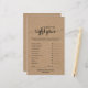 Este jogo de caligrafia rustic faux kraft "o que está no seu telefone" é perfeito para um chá de fraldas country. A frente do cartão de jogo apresenta "adivinha o preço certo", e a parte de trás do cartão apresenta "o que há no seu telefone". O design mínimo apresenta uma bela fonte moderna e um coração num fundo kraft falso. Personalize a frente do cartão com o nome da futura mãe e a data do chá de fraldas. Você pode personalizar as perguntas do jogo clicando no botão "personalizar". Por favor, observe que isto não está impresso em papel kraft real. É um gráfico de alta qualidade feito para parecer papel kraft.