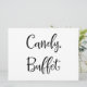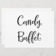 Um simples e lindo letreiro de "Candy Buffet" em caligrafia. Este letreiro feito à mão pode ser usado para adicionar um estilo moderno em recepções de casamento para mostrar que o amor é doce.