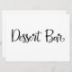 Um simples e belo sinal de "Bar do deserto". Este sinal manuscrito pode ser usado para adicionar um estilo moderno nas recepções de casamento ou qualquer outra parte para indicar o bar do coquetel. NOTA ________________________________________________________________________________________________ Este é um sinal de 6,5" x 8,75", clicando no botão "personalizá-lo" que você pode acessar às ferramentas de design para alterar o tamanho e a forma, e também pode adicionar uma cor de fundo. Para combinar este sinal com o seu estilo de casamento, pode escolher entre 12 opções de papel únicas. Para uma sensação rústica, use a kraft artística, para adicionar um pouco de vidro, use o shimmer de pérolas. __________________________________________________________________________________________________