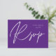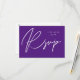 Envie um cartão de refeição RSVP de Caligrafia Violet Purple MOD, divertido e elegante, com seus convites para casamentos e festas, incluindo Festas de formatura. Veja nossa coleção para uma opção sem a refeição.