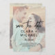 Esta fotografia desbotada da caligrafia balbuciosa, exceto que o cartão de data é perfeito para um casamento elegante. A design apresenta uma tipografia elegante, mas rústica, com duas de suas fotos, uma na frente e outra atrás.