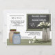 Este design apresenta um jarro de pedreiro bege cheio de lírios brancos. Um jarro de mason azul e bronzeado sentado perto da mesa de carvalho, junto com lírios de calla adicionais que também descansam sobre a mesa. Um quadro pendura na parede deste convite de casamento rústico mas elegante. Há um monte de texto personalizável para você personalizar este design para se adaptar ao seu evento. Também temos cartões RSVP correspondentes, cartões de agradecimento e selos postais. NOTE: Todos os itens desta loja são protegidos por direitos autorais e não podem ser copiados ou redistribuídos de nenhuma maneira. Para obter informações sobre este ou outros designs aqui vistos, ou se você precisar de assistência para posicionamento de fotos, personalização, seleção de cores ou pedidos especiais, use o recurso enviar mensagem anexado a esta loja e teremos o prazer de assistir