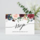 Caligrafia Elegante Moderna Aquarela Borgonha Marsala Blue Floral Cartão RSVP de Casamento Floral com Escolha das Refeições