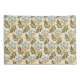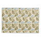 Seamless pattern of stylized blue flowers and green leaves on a beige background. The design is repetitive and conveys a calm, natural elegance.