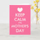 Calma, é um cartão de saudação Dia de as mães para a mãe. Faça seu próprio engraçado ficar calmo e carregar em paródia para sua mãe. Design de tipografia de cor rosa com coração branco de amor.