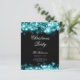 Convite para Festa de Natal Elegante com Programa e Menu que apresentam Luzes de Natal em Teal.