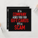 "Se uma empresa lhe pedir cartões-presente, é um golpe" Texto para espalhar a palavra: ser cauteloso com as chamadas telefônicas, pois pode haver burlões tentando roubar informações ou dinheiro de você. Os mais comuns são fraudes com o Suporte Técnico, fraudes com o IRS, fraude bancária e fraudes com dívidas.