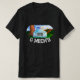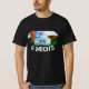 Esta camiseta mostra uma foto com um caminhão clássico, azul, velho sentado ao lado de uma árvore num campo com o sol brilhando.