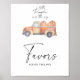 "Um pequeno Pumpkin está a caminho!" Convite para abóboras de aquarela com um caminhão cor de laranja cheio de abóboras. Itens correspondentes disponíveis.