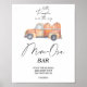 "Um pequeno Pumpkin está a caminho!" Convite para abóboras de aquarela com um caminhão cor de laranja cheio de abóboras. Itens correspondentes disponíveis.