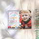 Celebre o dia especial do seu pequeno com este convite de aniversário de caminhões de construção modernos! Um modelo de convite de festa de aniversário divertido e econômico para uma festa de aniversário com tema de construção! Este design apresenta uma foto do menino aniversariante e três veículos de construção: um trator, uma escavadeira e um caminhão de cimento ao longo da parte inferior do cartão. O convite diz "Pare o tráfego, feche a estrada!" com o nome e a idade do menino aniversariante terminando em "anos de idade!" para rimar! Abaixo, há um mini sinal de parada separando os detalhes do evento do topo do texto. Os detalhes do evento são escritos em letras maiúsculas grandes e negrito, com uma mensagem personalizada (nós escolhemos "ansioso para ver você!") na parte inferior. Por trás da tipografia, há um padrão de tijolos em torno da borda do cartão para se adequar ao tema de construção! A paleta de cores é uma mistura brilhante de vermelho, azul
