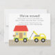 Convide seus amigos para uma festa de aquecimento da casa em seu novo endereço com este caminhão amarelo giro e giro rebocando uma casa com seu gramado intacto. Personalize facilmente com seus detalhes.