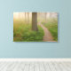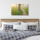 Tela impressa de um caminho caminhando através de bluebells levando a uma floresta ao nascer do sol em uma manhã nebulosa, criando uma atmosfera mágica.