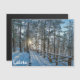 Vista da floresta de pinheiros com neve com raios solares a passar e caminho de madeira para relaxar. Coberto de pinheiro de neve, abeto e árvores de abeto.