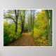 caminho de madeira através da poster de árvores A PARTIR DE 8,99. Esta bela fotografia de um caminho através da floresta ou floresta foi tirada na República Checa no outono. As árvores majestosas e suas cores de queda são obras de arte próprias para suas paredes em casa na trilha levam o espectador ao coração da imagem da floresta.