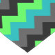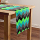 A 16” x 108” table runner featuring an elegant pattern design of multicolored chevrons in black, gray, green and turquoise.