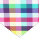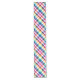 Um corredor de mesa de 16"x108" com design colorida de padrão de xadrez em cores arco-íris.