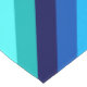 Um corredor de mesa de 16" x 108" com um design de padrão legal de faixas diagonais em azul marinho, azul cobalto, azul-céu, talhe de menta gelada e turquesa leve.