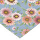 Um design moderno original com buquês coloridos de margaridas africanas rosa, rosa e pêssego, também conhecidas como Gazania, em um fundo azul.