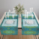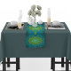 Com uma moderna mistura de designs Tantric e Lotus mandala em verde e turquesa, este corredor de 100% de algodão simboliza a natureza e o ar, aumentando a conscientização sobre as mudanças climáticas. Feita à mão nos EUA com uma vibrante impressão de ponta a ponta, é um toque perfeito de elegância e tradição para qualquer ocasião.