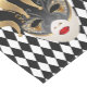 Este corredor de mesa é mostrado com um impressão de fundo padrão de diamante preto e branco com um festivo impressão de máscara do festival Mardi Gras. Personalize este item ou comprar como está. Escolha entre outros tamanhos.
