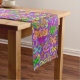 Adicione um toque festivo a sua decoração home com este corredor da mesa do carnaval. Características deste design uma variedade de máscaras do mascarada da pena em uma parada das cores, do verde, do roxo, do rosa, do azul alaranjado e do ouro. Projetado pelo © mundialmente famoso Tim Coffey do artista.