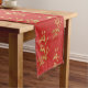 Pano para mesa de feriado apresenta ramos dourados desenhados à mão em fundo vermelho festivo