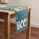 Design de texto para o Dia das Bruxas com decoração de gato, aranha, coruja e aranha sobre fundo azul.