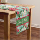 Personalize este corredor elegante de mesa com um padrão de camellias vermelhas e brancas em um fundo especial com o nome da sua família.