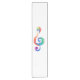 Chave musical desenhada a partir de camadas multicoloridas de cores do arco-íris sobre fundo branco.