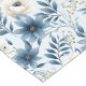 Num fundo azul claro, há um padrão adorável de azul escuro e flores beges com bagas de ouro.
