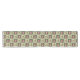 Quatro quadrados em verde e bronzeado são enfeitados com ornamentos vermelhos decorados com flocos de neve brancos e verdejantes com bagas vermelhas. A costura branca adiciona um toque decorativo, dando ao padrão repetitivo a aparência de uma colcha, criando um sentimento perfeitamente aconchegante para o feriado de Natal.
