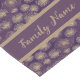 Personalize este elegante caminho de mesa roxo com um padrão de estrelas explosão douradas com o nome da sua família.
