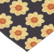 Vestir uma mesa com uma mesa colorida de pano de algodão que mostra a foto de uma flor amarela Dahlia em um fundo preto e impressa em um padrão repetitivo. Um design floral adorável!