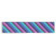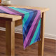 Um corredor mesa de 14" x 72" com um padrão colorido de design de faixas diagonais em legal tom, azul-oceano, azul-marinho, roxo de ameixa e lavanda.