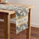 Personalize este corredor elegante de mesa do relógio de dandelion com o nome da sua família. Perfeito para jantar no estilo da casa de campo.