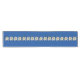 Corredora de mesas inspirada na Europa feita em azul com gráficos de flores brancas de edelweiss correndo pelo meio.