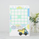 Chá de fraldas bingo card para felicitar os nossos caminhões de construção pelo convite para chá de fraldas com pontos de confete de cor azul, verde e amarelo e caminhão de lixo.