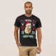Golden retriever com o T do X-Mas do chapéu do papai noel que deseja lhe Woofmas alegre. Presente do Natal do divertimento para o pai, a mamã, o filho, a filha, o irmão, a irmã, a tia, o tio, a avó, o vovô, o qualquer um na família ou um amigo. Woof. Wooof. Woof. Latido. Presente perfeito do Natal para do cão dos amantes proprietários e fãs do golden retriever especialmente. O t-shirt caracteriza o teste padrão feio típico do Natal (estilo feio do X-Mas da camisola). Camisa do proprietário T do cão. Presentes para proprietários do cão. Presentes para proprietários do golden retriever.