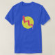 Um relâmpago vermelho retro dentro de um design amarelo da camisa do círculo