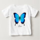 O design original das belas artes de uma borboleta azul rica do swallowtail de Ulysses pelo artista Carolyn McFann imprimiu no delicado e em um t-shirt customizável da malha do jérsei do bebê. Grande ideia do presente do chá para a mamã ou pais novos!