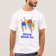 Esta camisa caracteriza uma imagem do gelo do shave de quatro cones da neve: gelo vermelho, azul, amarelo, e um do arco-íris do shave. Diz, de "gelo do Shave Gimme" em uma pia batismal azul que os olhares como ele estejam derretendo. Faz minha água da boca!