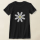 Esta camisa caracteriza uma ilustração de uma margarida adorável. A margarida tem as pétalas brancas e um centro amarelo.