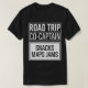 Seja o melhor parceiro de viagem com esta ousada camisa do "Capitão Trip Rodoviário"! Com "Snacks, Maps, Jams" em fontes achatadas, é perfeito para aqueles que navegam, DJ, e alimentam a diversão nas férias da família e nas aventuras de casal.
