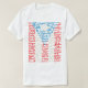 Camisa blanca con los nombres de los pueblos de Puerto Rico. Los nombres forman la bandera de Puerto Rico.