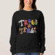 " Doçura ou travessura" tirada nos doces e nas letras do Dia das Bruxas. O desenho original foi feito à mão e criado usando o lápis colorido, e as cores brilhantes e o olhar handcrafted do original vêm completamente belamente neste artigo. Seja certo olhar "mais" sob a seção do estilo para encontrar outros tipos de camisas assim como de camisas das crianças.