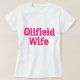 Camisa branca na moda que diz a esposa de Oilfield em legal cor-de-rosa. A parte de trás da camisa diz que passar uma semana de cada vez e tem bagaço de petróleo.