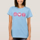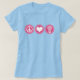 As senhoras cor-de-rosa da paz, do amor e do Lacrosse/laço das meninas tingem o t-shirt. O sinal, o coração e o lacrosse de paz colam os símbolos que representam a paz, o amor e o lacrosse. Amor da paz relaxado. Design legal e original para o fã e o jogador do lacrosse.