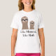 Camisa de moça com duas preguiças — uma grande preguiça e uma pequena preguiça. Na legenda lê-se "Como a mamãe, como a loth"